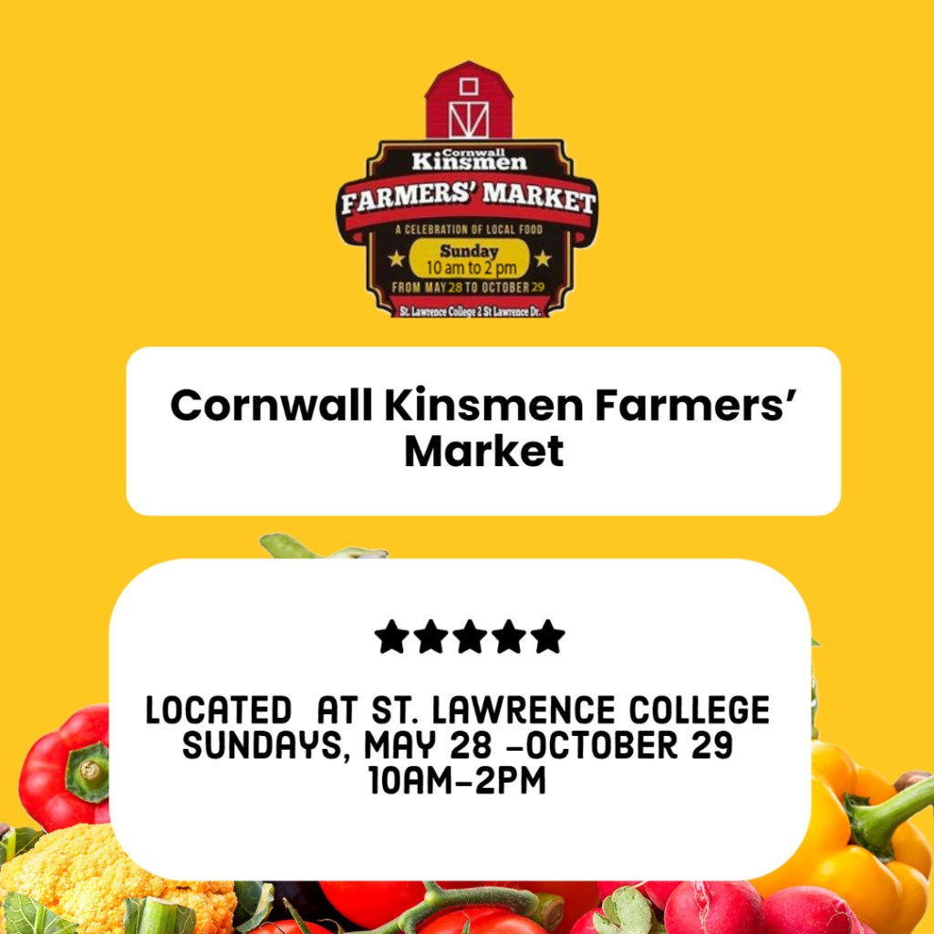 Kinsmen Farmers’ Market Where St. Lawrence College Map When May 28/23 10:00 AM - Oct 29/23 02:00 PM Age All A celebration of local food. Sunday 10a-2p from May 28th – October 29